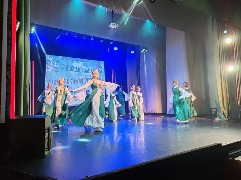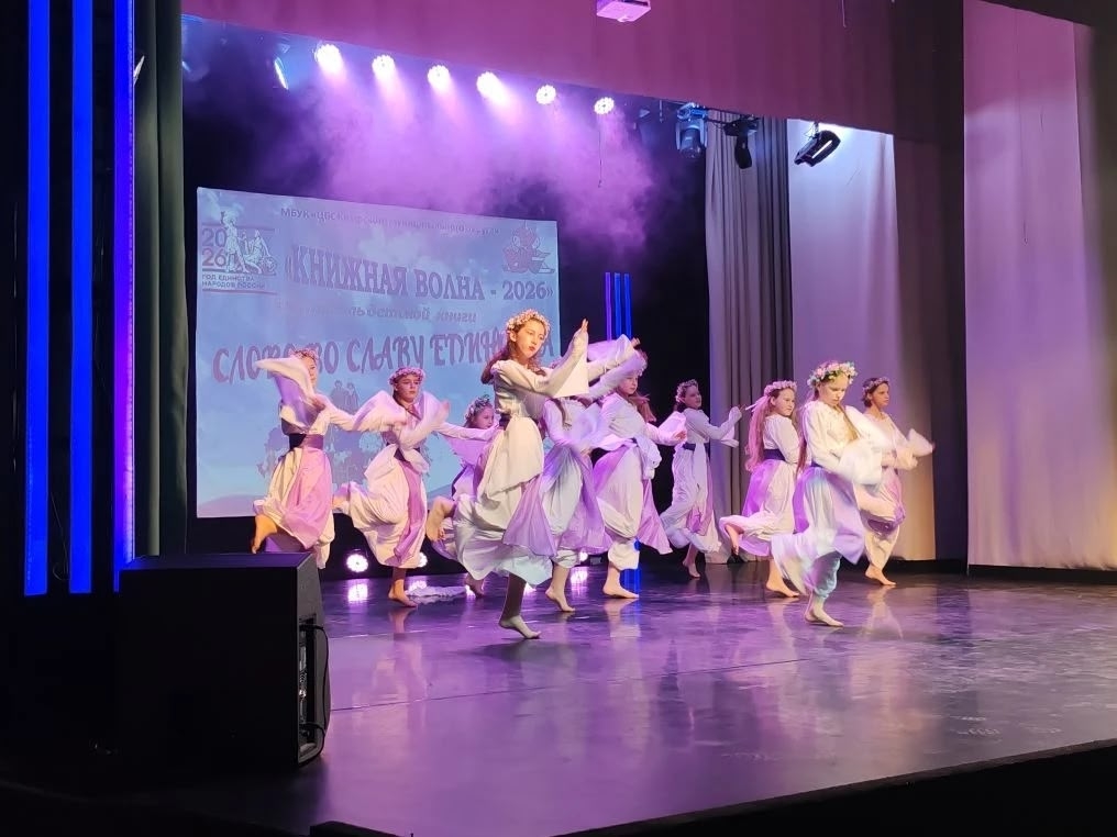 Фестиваль детской книги и чтения «Книжная волна - 2026» под девизом "Слово во славу Единства", посвященный Году единства народов России. Украшением праздника стали творческие номера студии народного танца "Забава" (рук. Т.В. Хатина).