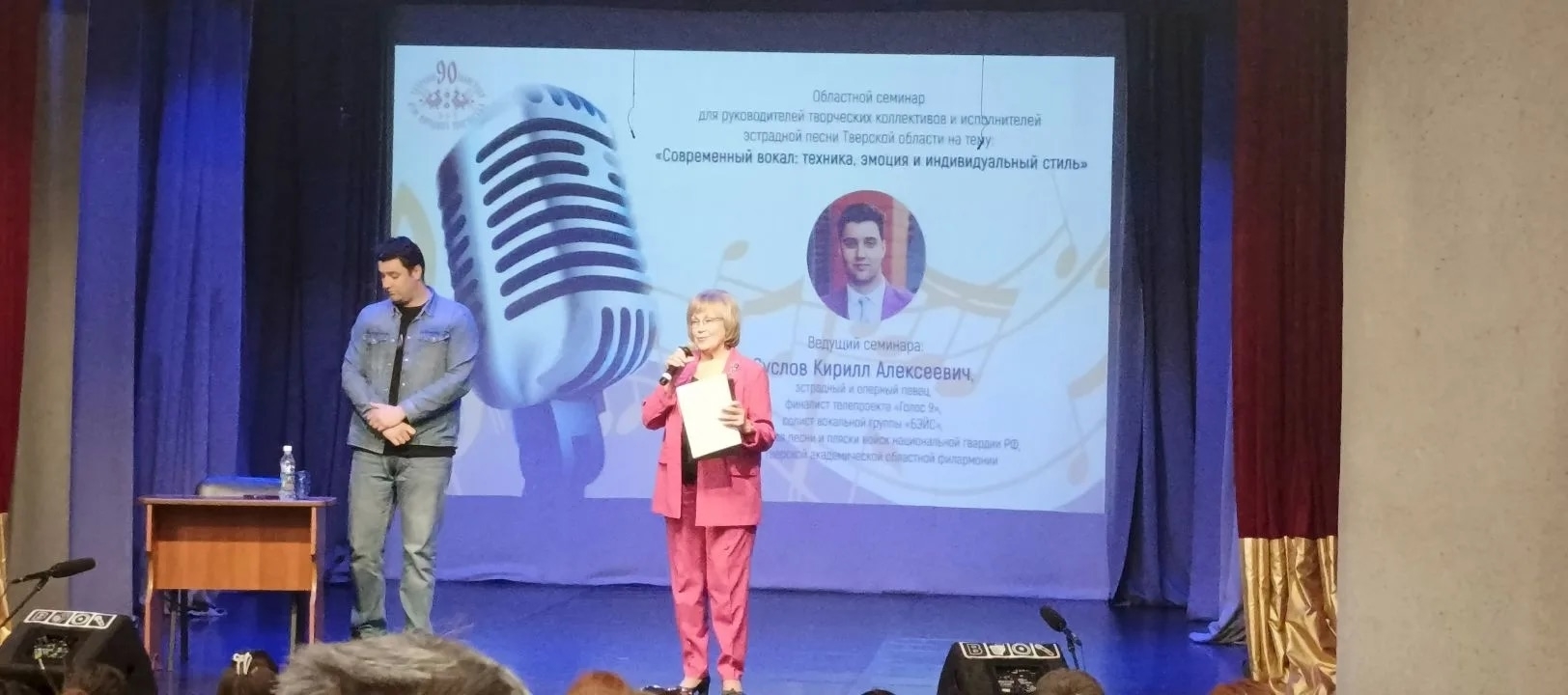 В Тверском областном доме народного творчества состоялся семинар для руководителей творческих коллективов и исполнителей эстрадной песни на тему: «Современный вокал: техника, эмоция и индивидуальный стиль», в котором приняла участие руководитель нашего Клуба авторской песни "Кристалл" Кристина Киути. Насыщенный интересный день, познавательная программа семинара, ведущим которого был Суслов Кирилл Алексеевич - эстрадный и оперный певец, финалист телепроекта «Голос 9», солист вокальной группы «БЭЙС», солист ансамбля песни и пляски войск национальной гвардии РФ, солист Тверской академической областной филармонии.